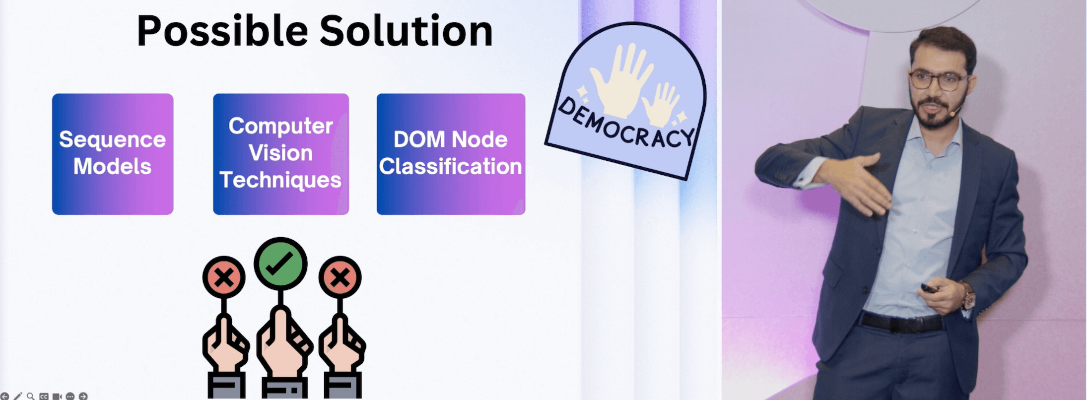 The talk started off by showing how web scraping complements ML, which boiled down to stating that language models need a lot of data to work. In the second part, the speaker tried exploring web scraping through an LLM interface, with various results. He then moved on to data parsing techniques, which included computer vision, sequence models for selectors, and using multiple models at once to reach a consensus.