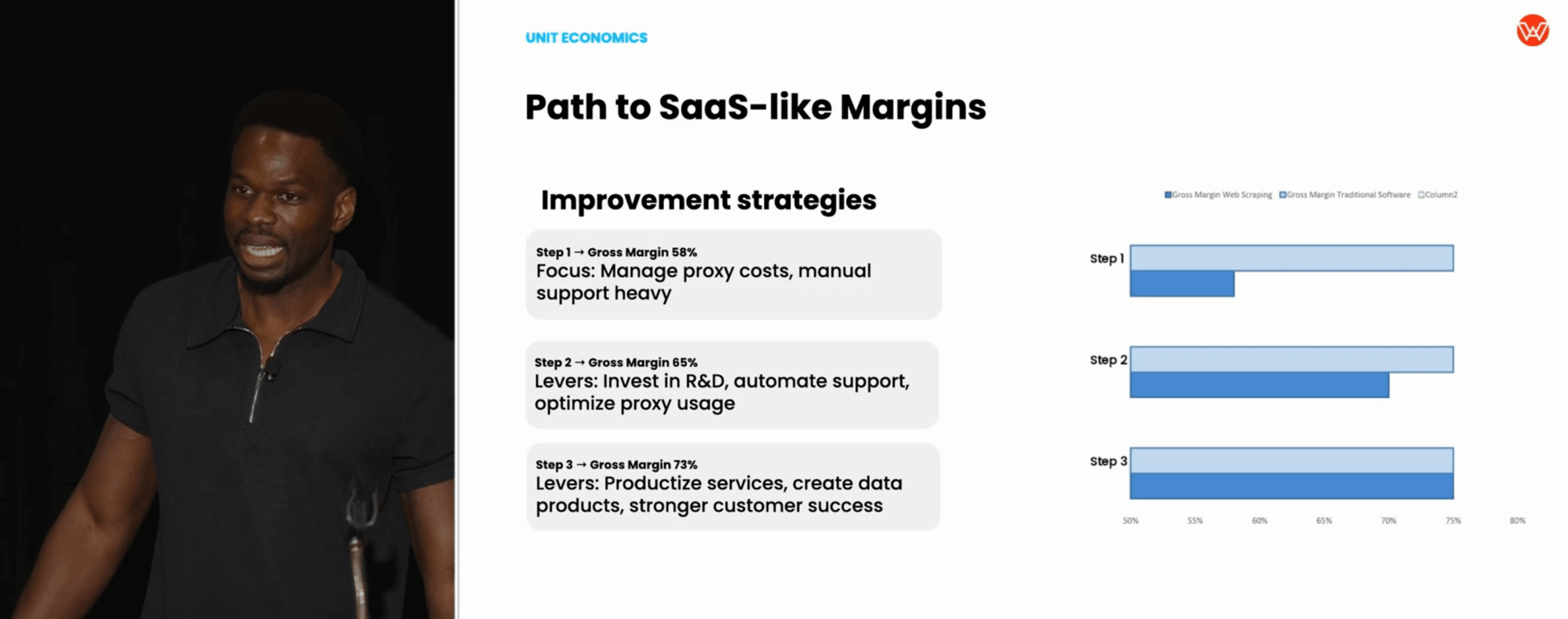Victor even concocted a three-step margin improvement strategy that revolved around cutting proxy costs, automating support, and pushing upsells with AI. Some of the advice was a little hand-wavy (such as building models that auto-adjust to bot changes), but the talk was delivered from a business and not a technical point of view. This one’s optional.