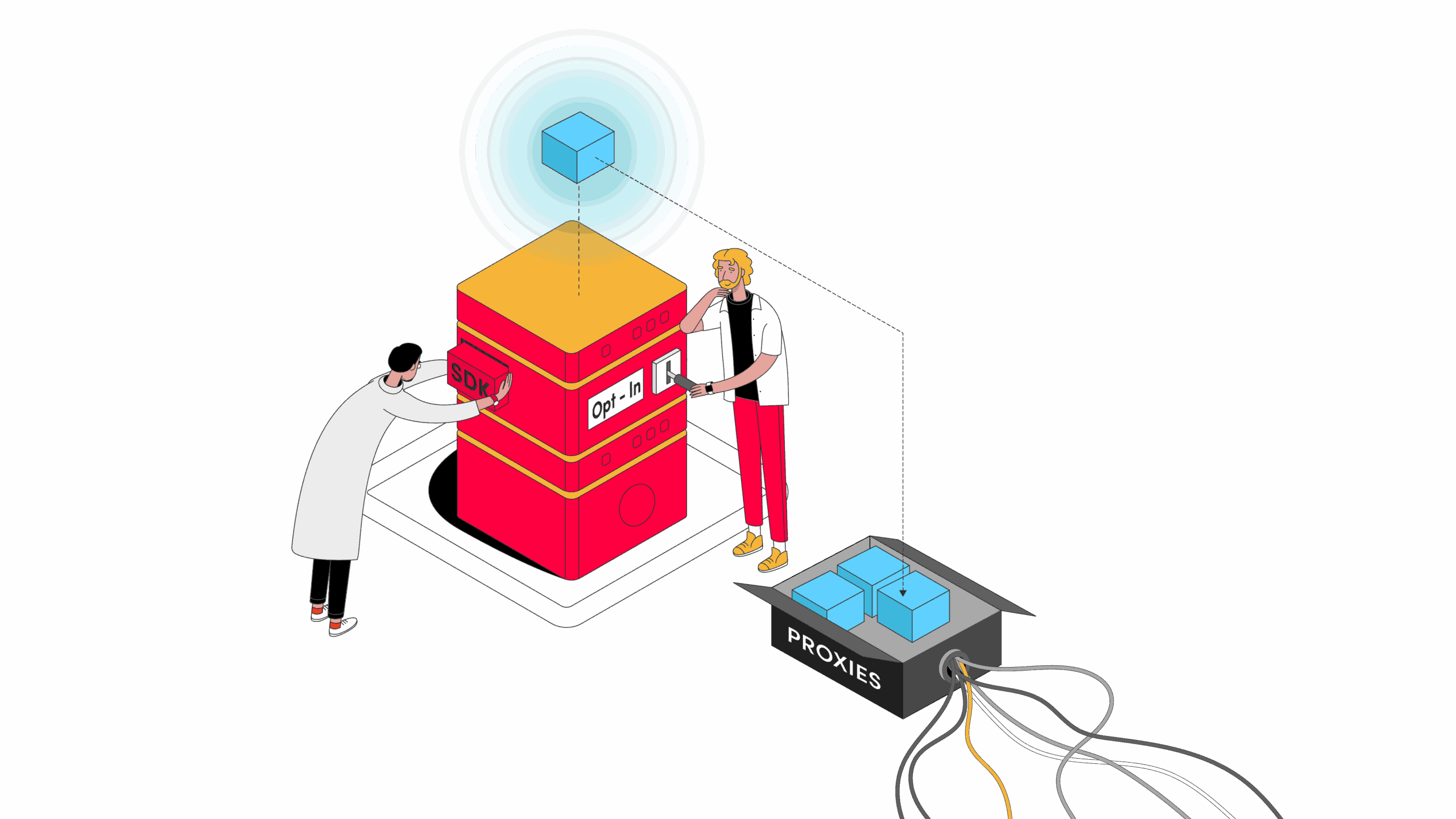 - A certain amount of approved traffic is routed through the user’s device, borrowing their IP address. Effectively, the user turns into a proxy.