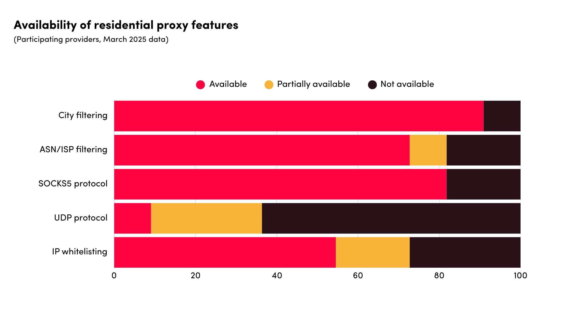 The main usage restrictions involve mailing, governmental, financial websites, and login pages. Many of these can be unblocked if you’re willing to talk and pay enough. Another trend we’re seeing is prohibiting bandwidth sharing apps like Grass; residential traffic isn’t cheap, so we’re frankly not sure how the economics work out here.