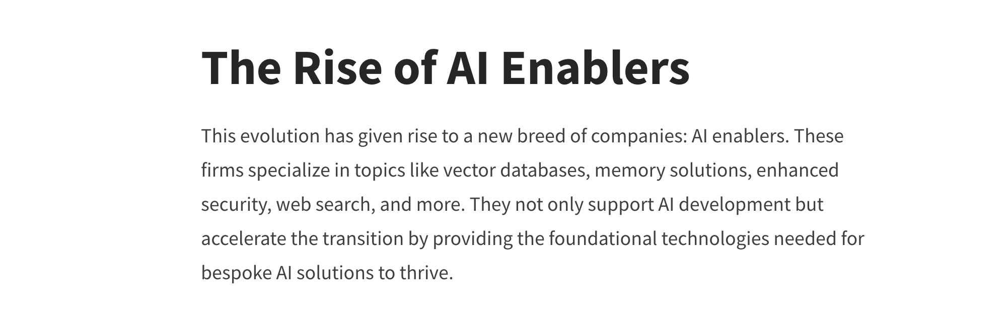 The final, though probably least quantifiable, characteristic is the mindset. While they foremost offer infrastructure, the new crop seem to have a builder’s mentality. They show no qualms over layering research assistants, lead enrichment agents, and other functionality upon the core service. This showcases the platform’s capabilities, expands the problem space, and creates potential opportunities for a pivot.
