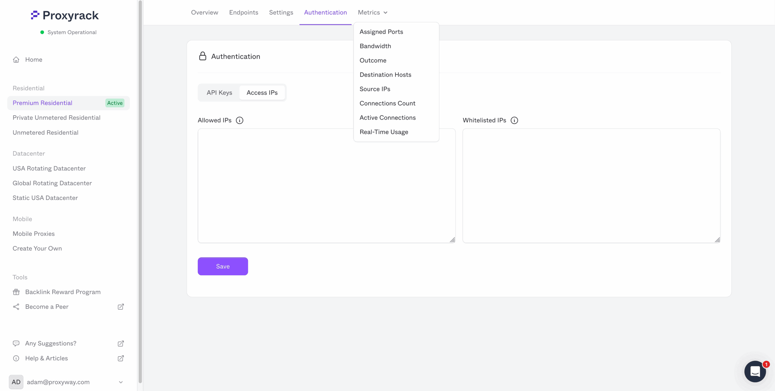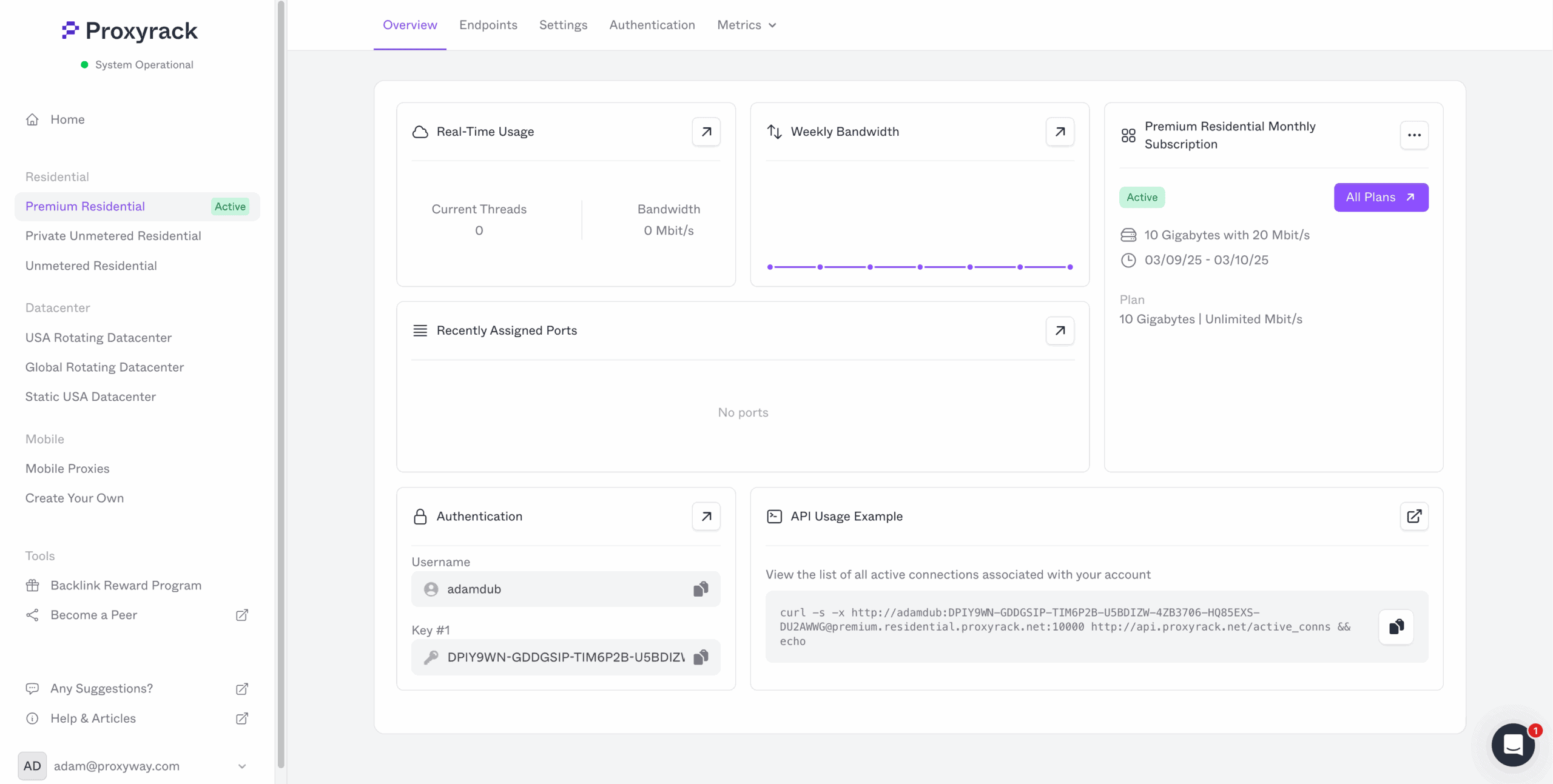 This section explores Proxyrack’s dashboard, proxy setup, and customer service.