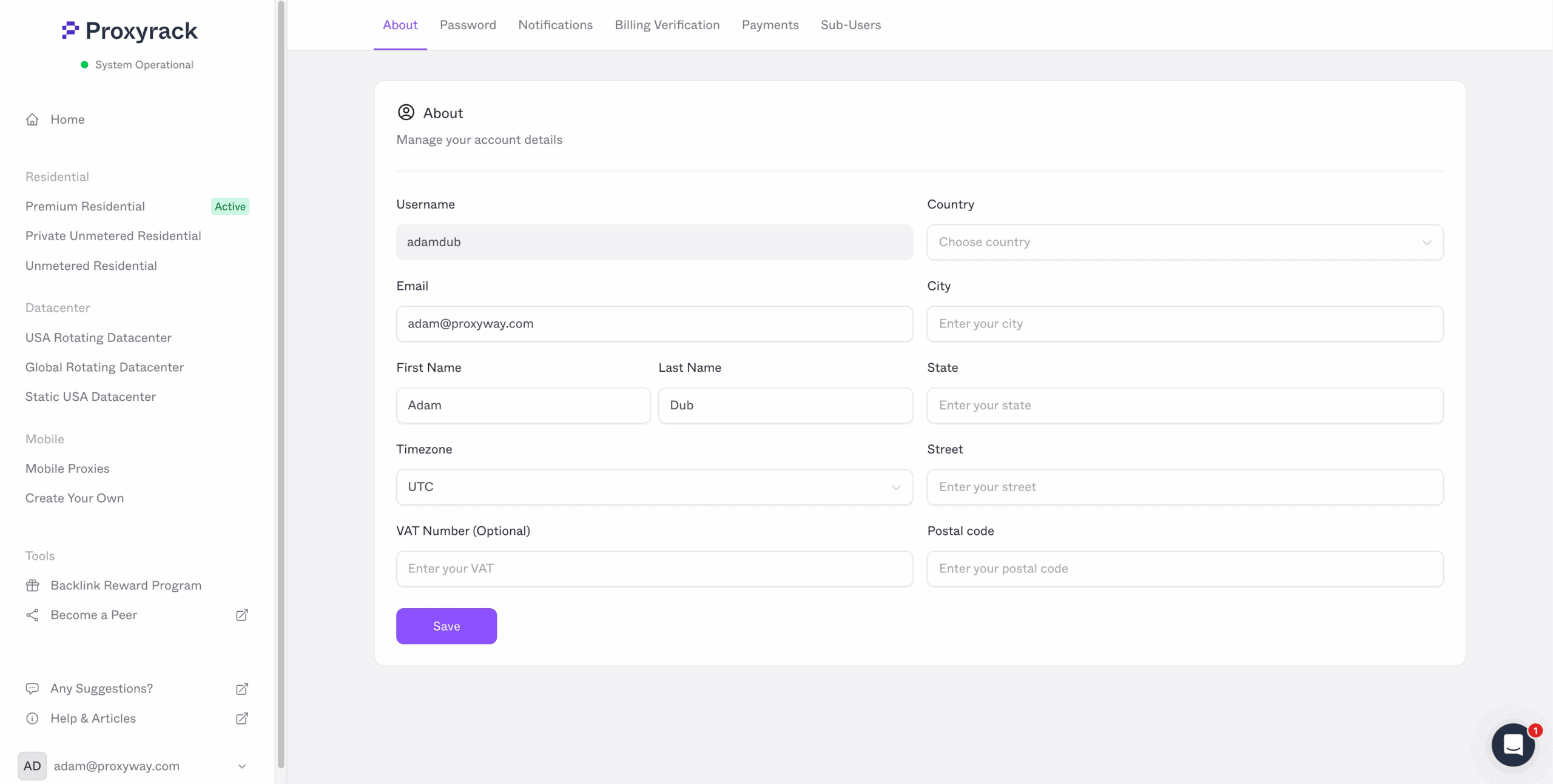 Proxyrack requires undergoing a KYC verification procedure. You can do this through the dashboard.
