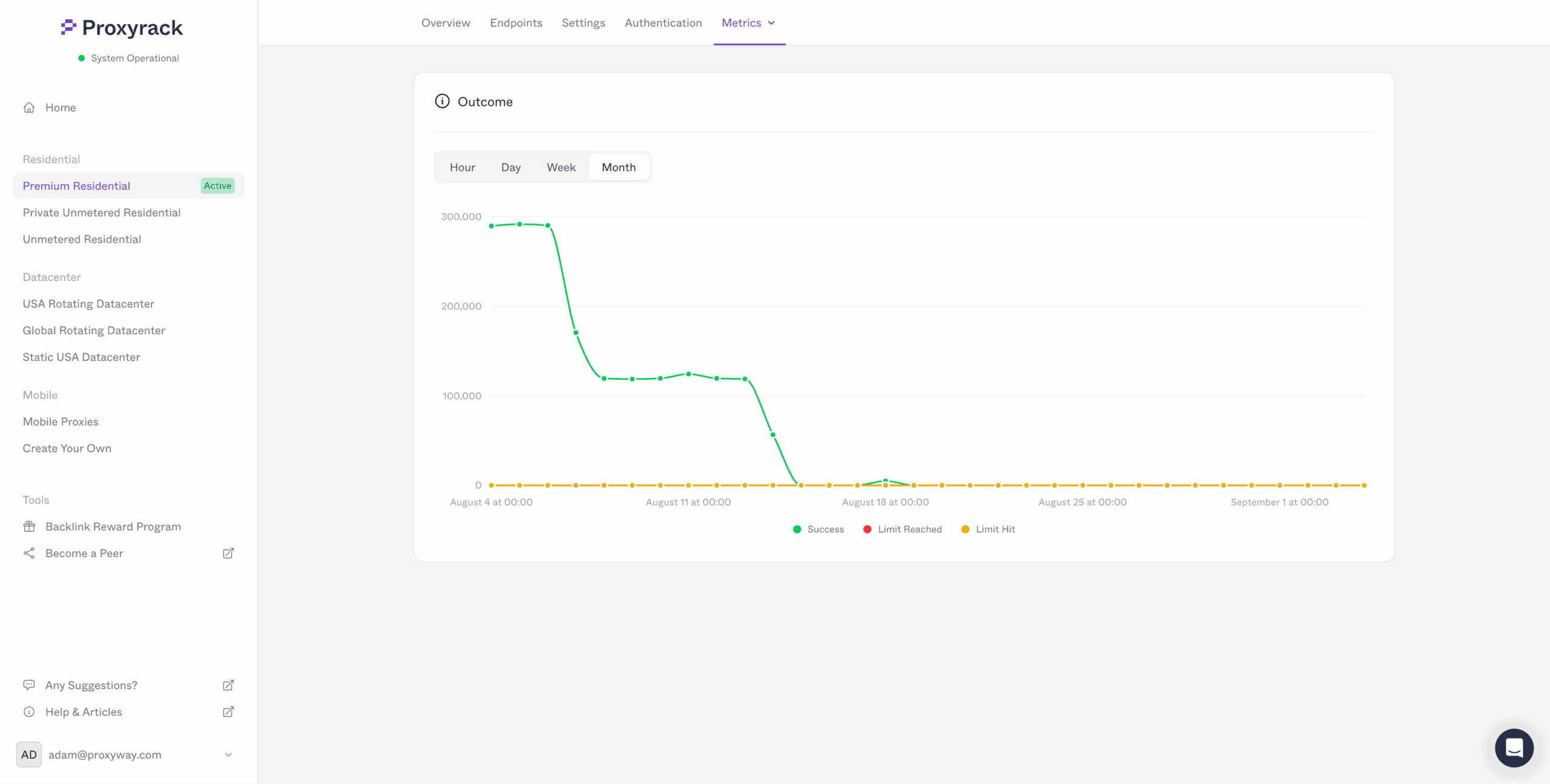 And secondly, even though Proxyrack uses the same system for all products, their stats are highly fragmented. We couldn’t cross-reference the usage of two products – or even two sub-users of the same product, for that matter.