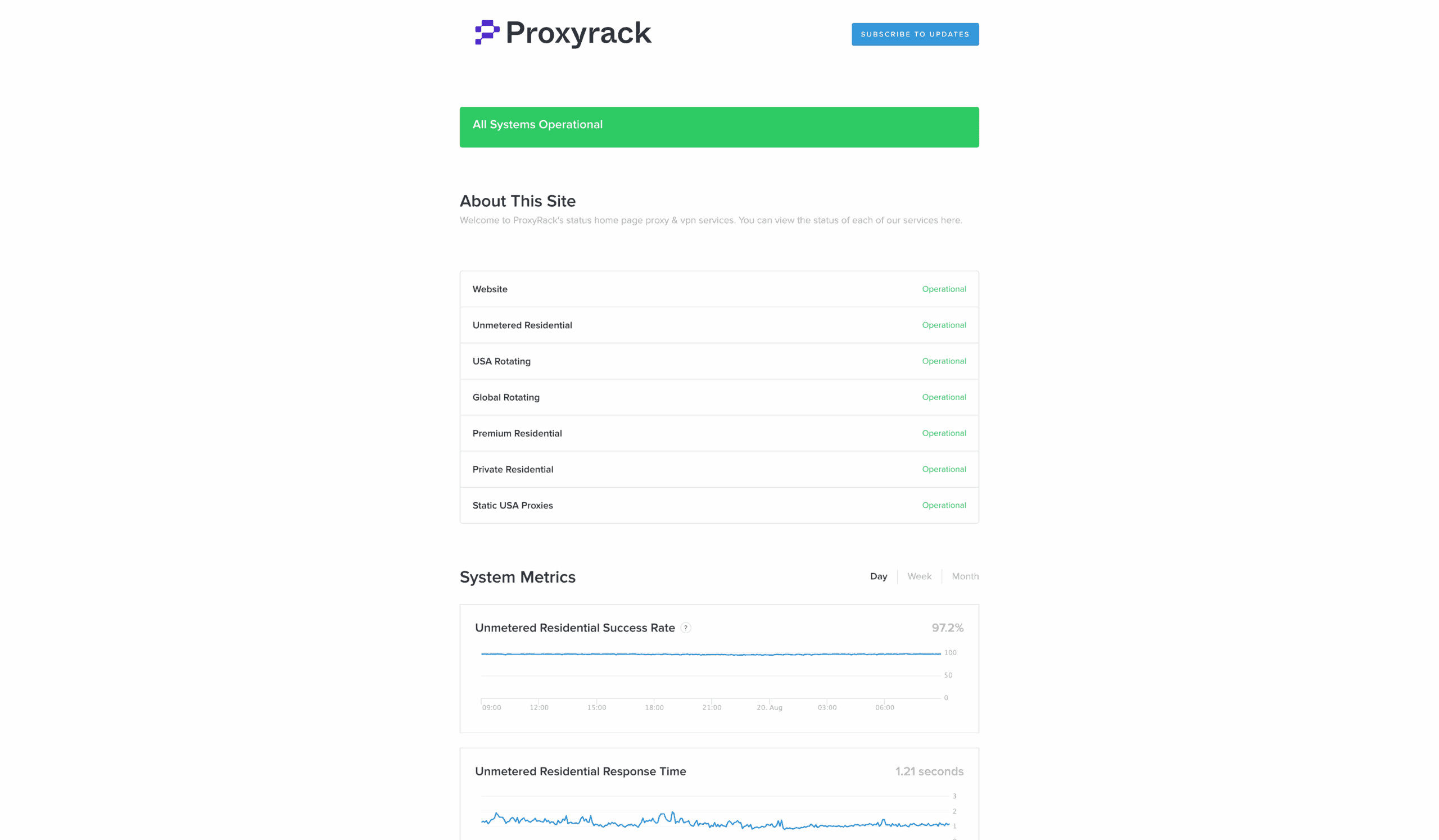 In addition, the provider includes a highly detailed network status page. There, you’ll find not only uptime but also infrastructure success rate and response time metrics. Proxyrack doesn’t try to game the numbers, so we have to commend them for that.